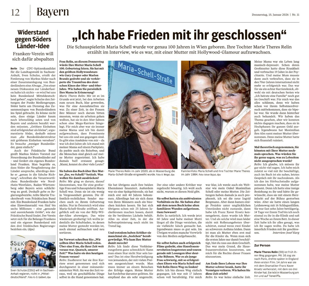 15. Januar 202622. Januar 2026 von Marie Theres Augsburger Allgemeine – „Ich habe Frieden mit ihr geschlossen“ Erschienen in Ausgburger Allgemeine am 15.01.2026 © Josef Karg